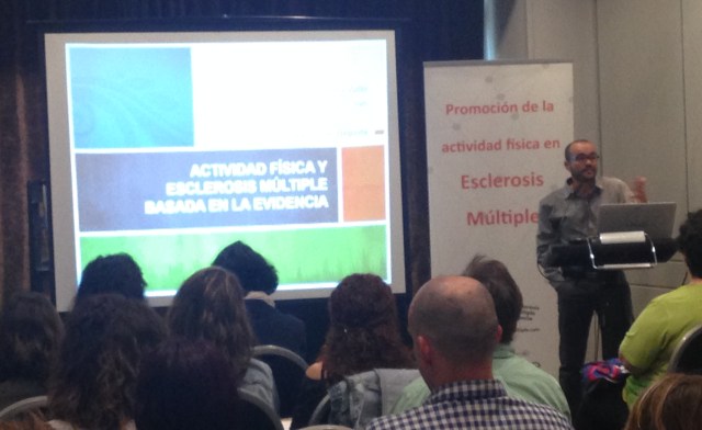 Mi ponencia se tituló «Actividad física y EM basada en la evidencia». En primer lugar hice referencia a la evolución de los estudios científicos sobre el tema los últimos veinte años; y más tarde presenté a los profesionales de hospitales de todo el territorio nacional las actividades que realizamos en el Centro de Investigación del Deporte de la Universidad Miguel Hernández de Elche con respecto a la patología: estudios científicos y sus primeros resultados, clases dirigidas, etc.