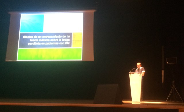 El pasado 17 de noviembre de 2015 tuve el honor de presentar los resultados del estudio «Efectos de un entrenamiento de la fuerza máxima sobre la fatiga percibida en pacientes con EM» en la prestigiosa Reunión Anual de la Sociedad Española de Neurología, celebrada este año en Valencia.